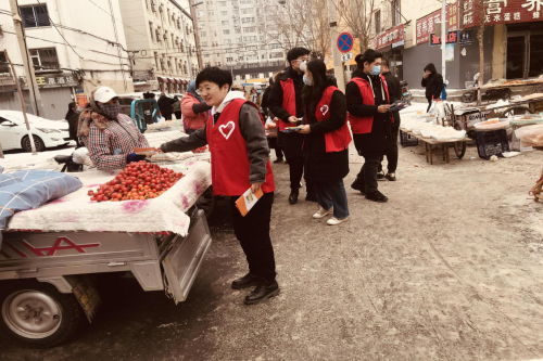 近日,为进一步弘扬“奉献、友爱、互助、进步”的志愿服务精神,向建党 100 周年献礼,仁兴街园北社区党委组织大学生志愿者10人在早市开展3.5“学雷锋纪念日”主题志愿服务活动。