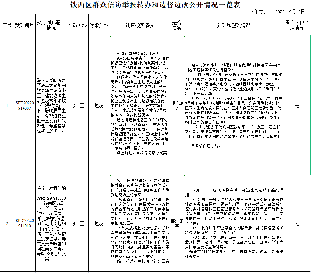 铁西区群众信访举报转办和边督边改公开情况一览表